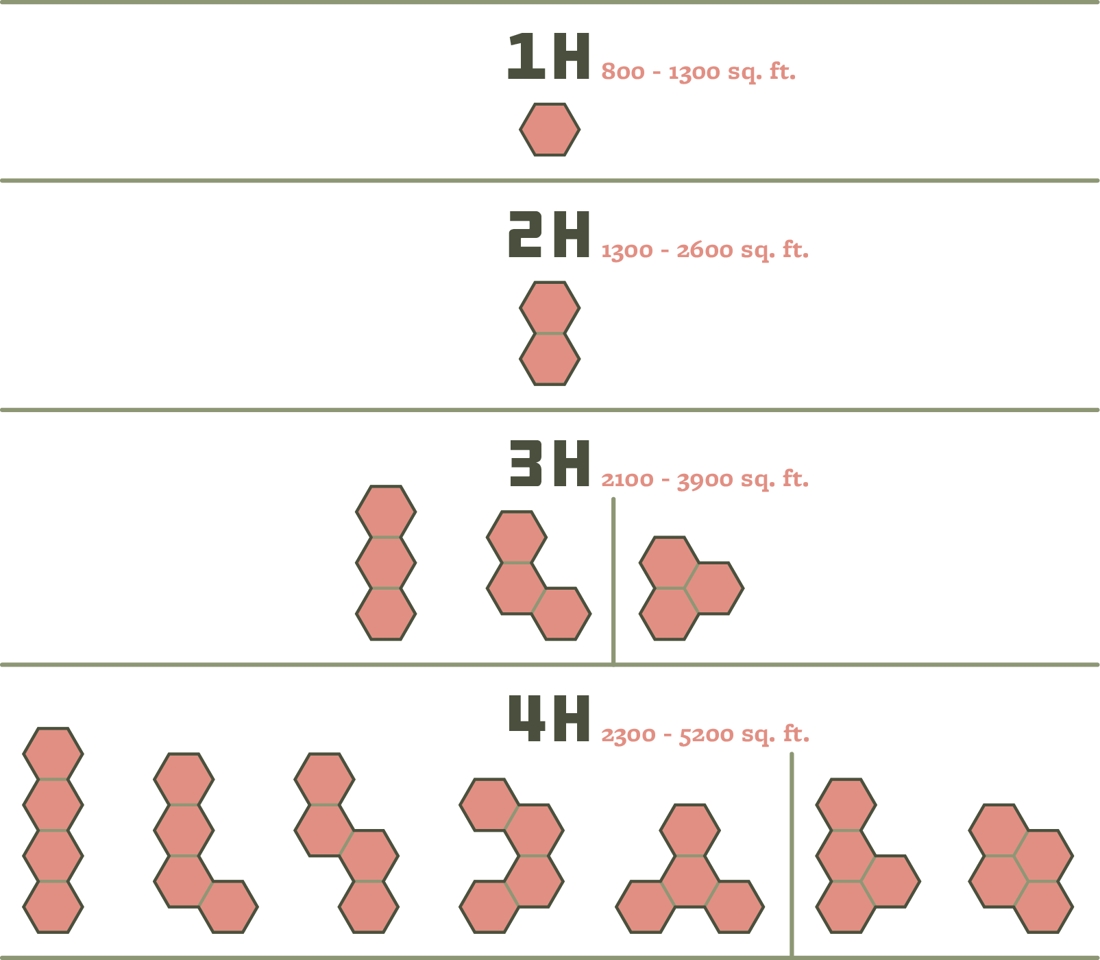 With each 500 square foot hexagonal pad, increasing permutations are possible.