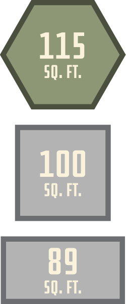 The 3 shapes below have the same amount of exterior wall (the most expensive + complex part of a house), but the hexagon unlocks more than 15% extra floor area compared to a boring square.
